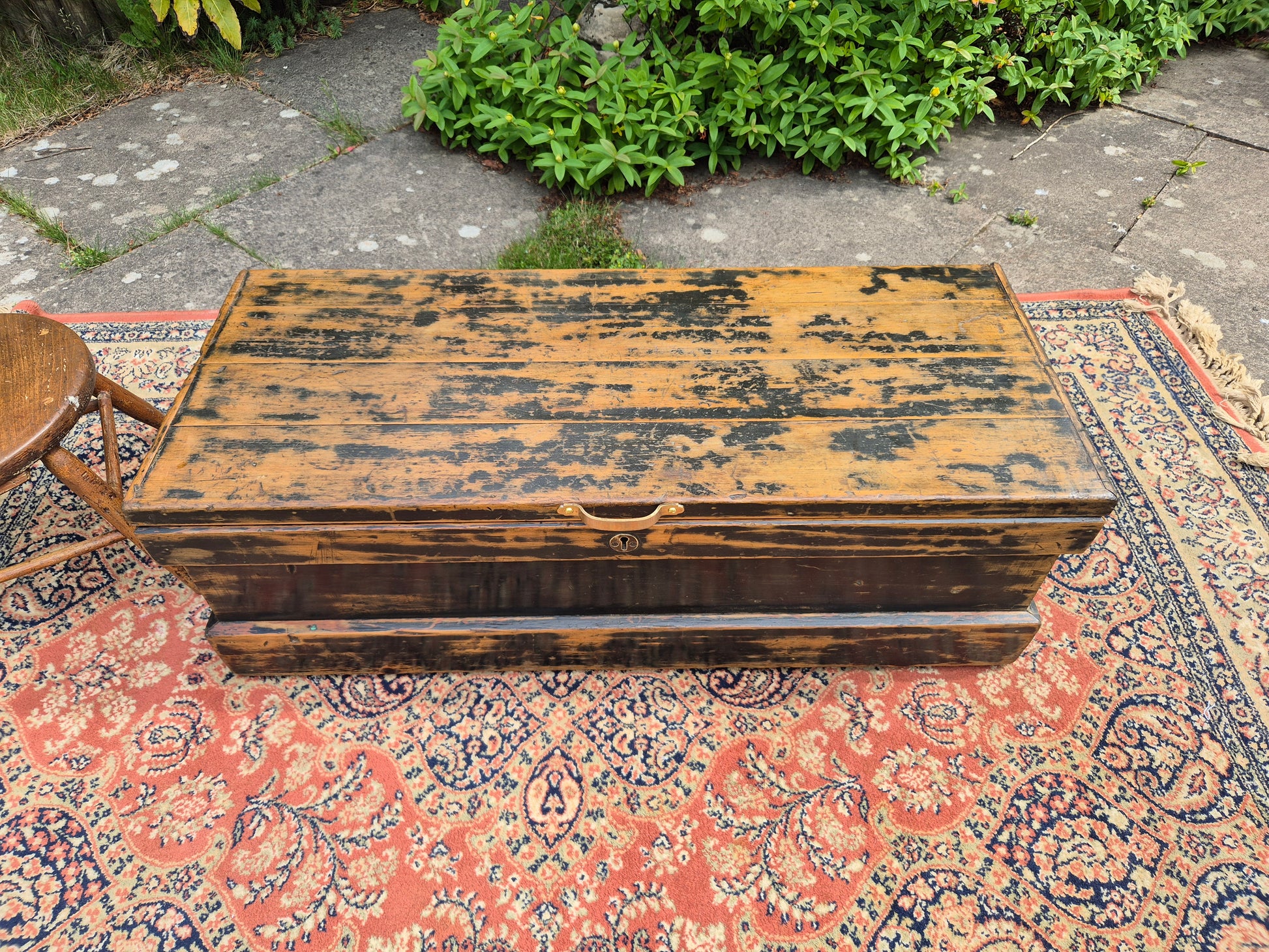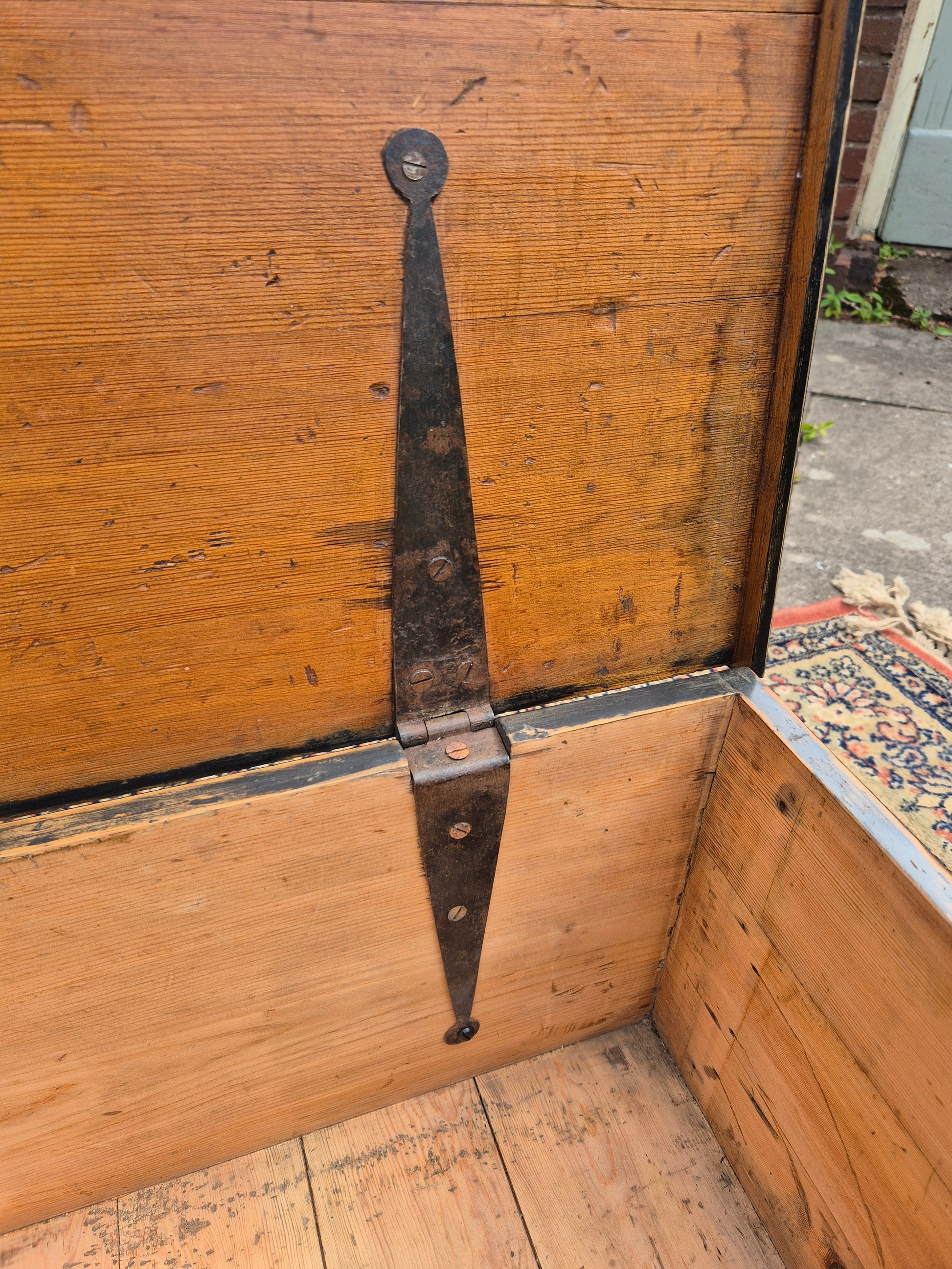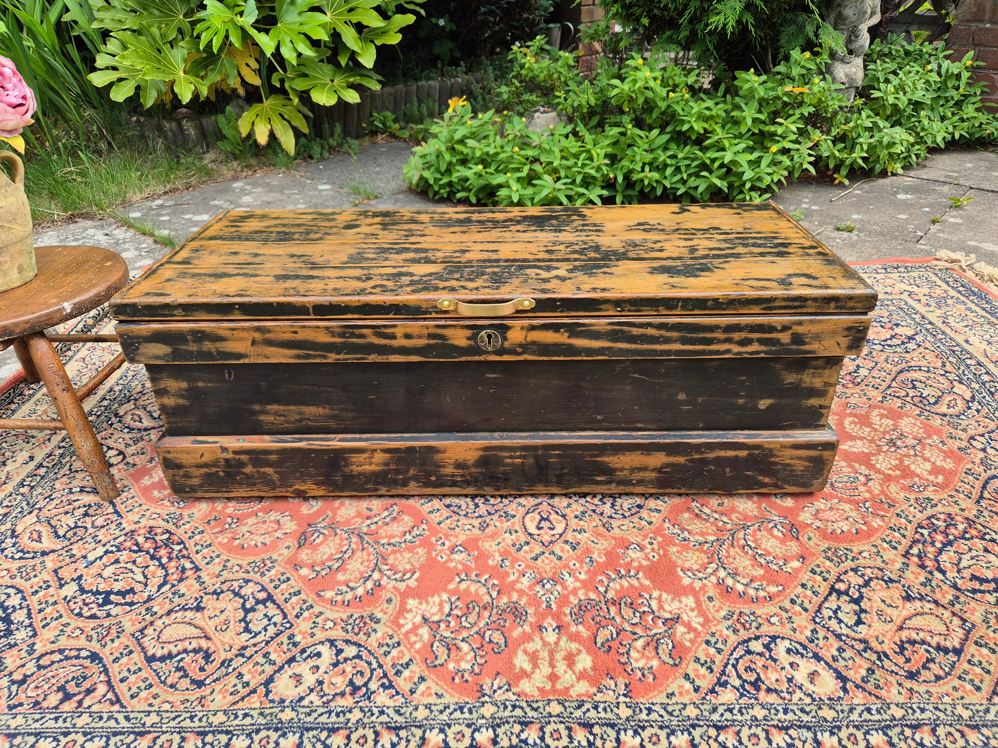 Lovely vintage pine box all polished and ready for the home. Lovely brass handle and escutcheon to the front. No key which is usual with these old vintage boxes.