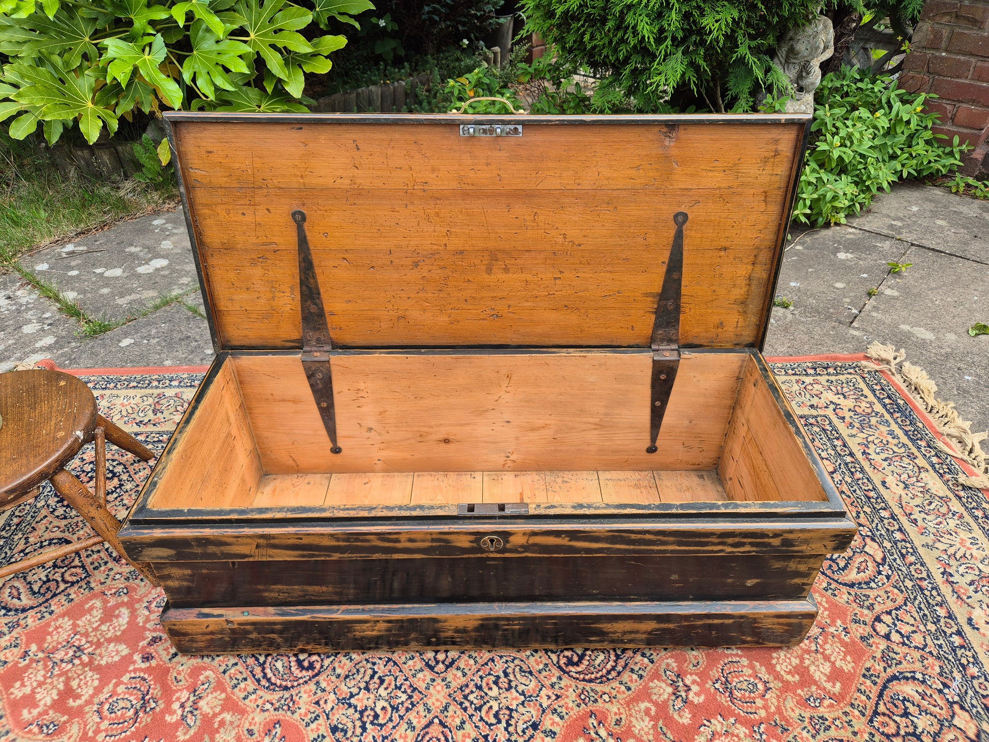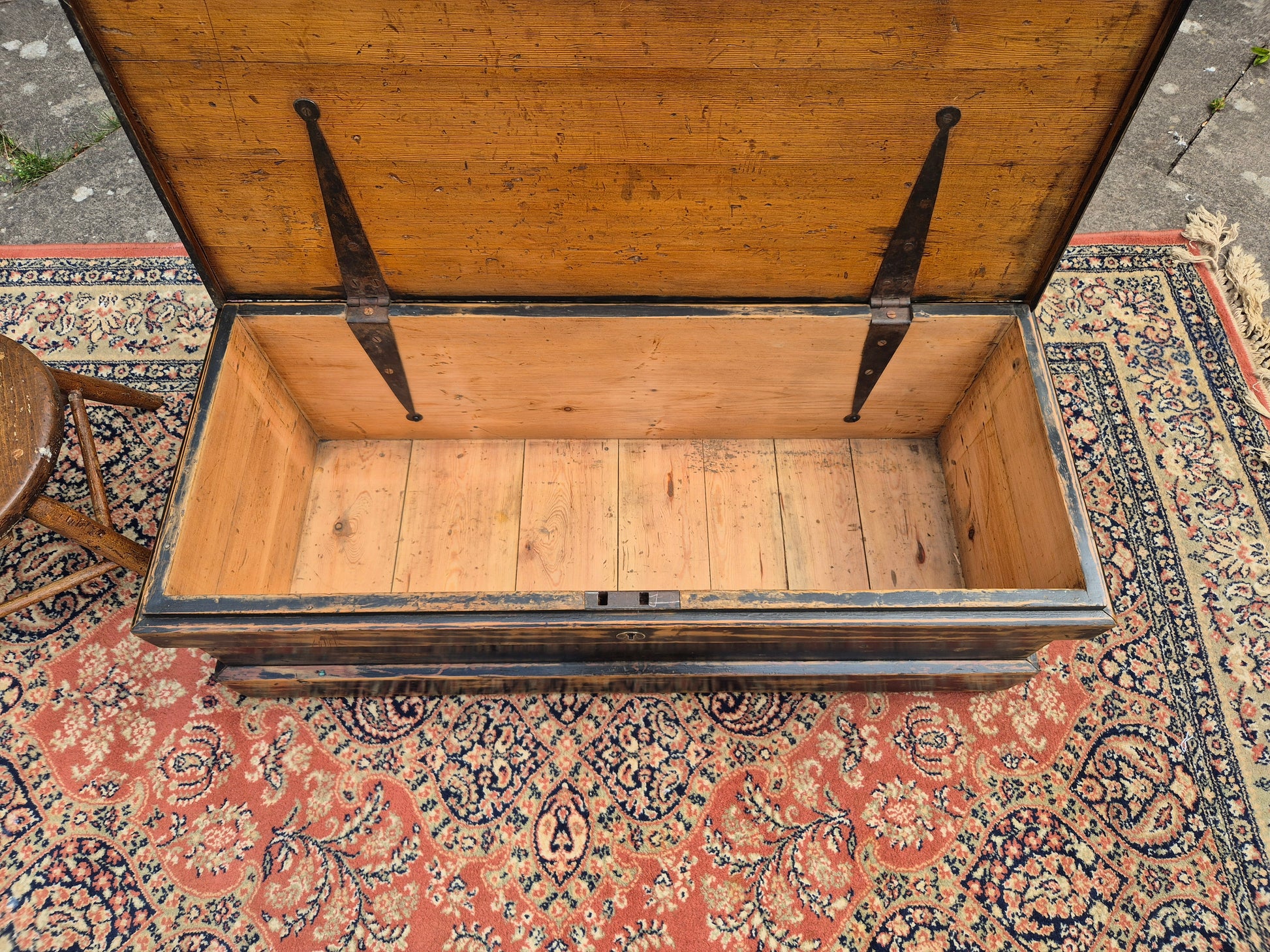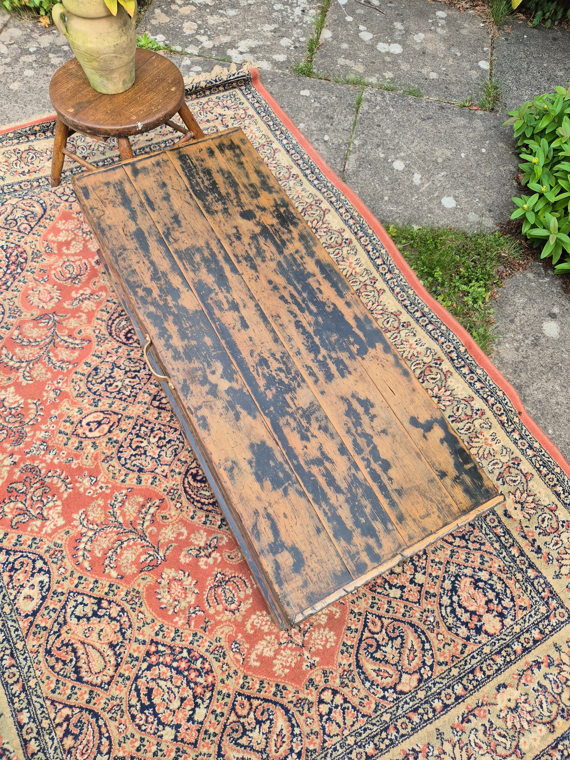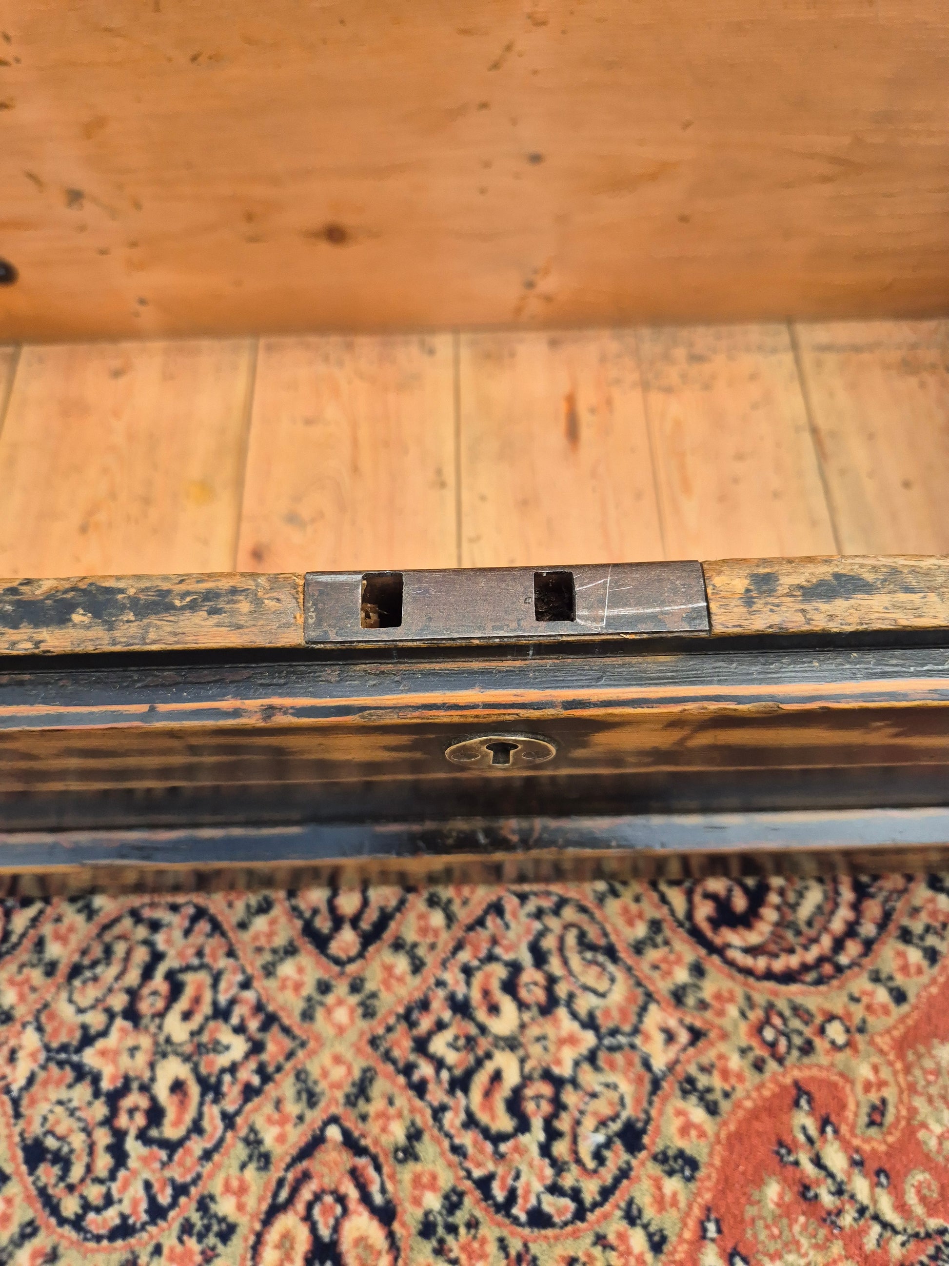 Lovely vintage pine box all polished and ready for the home. Lovely brass handle and escutcheon to the front. No key which is usual with these old vintage boxes.