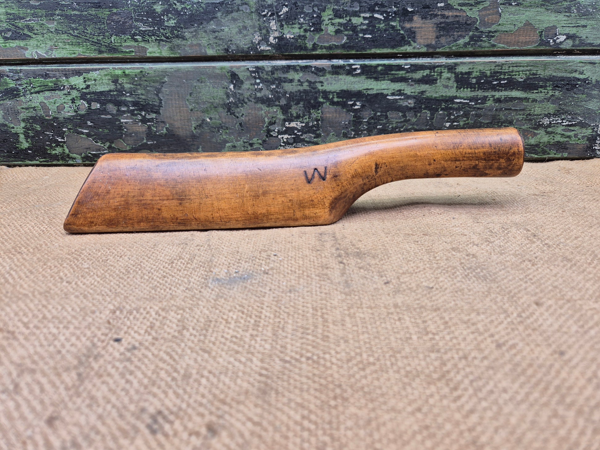 Lovely example of a vintage hardwood roofers' or plumbers' lead former dressing stick.