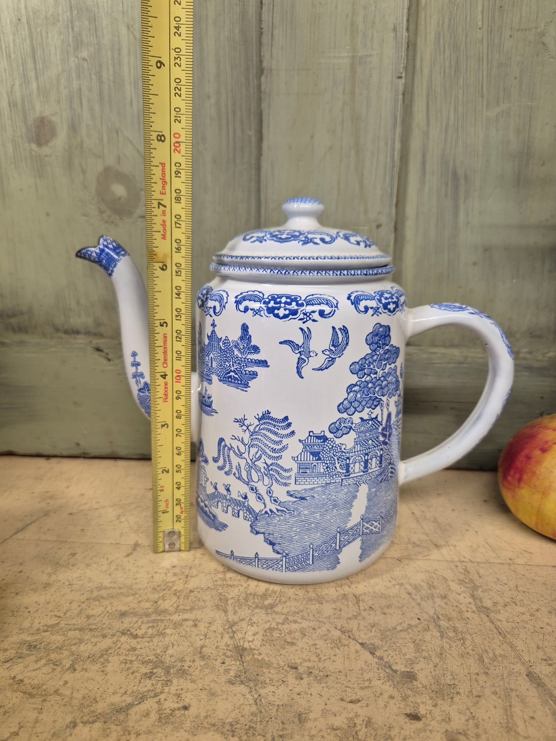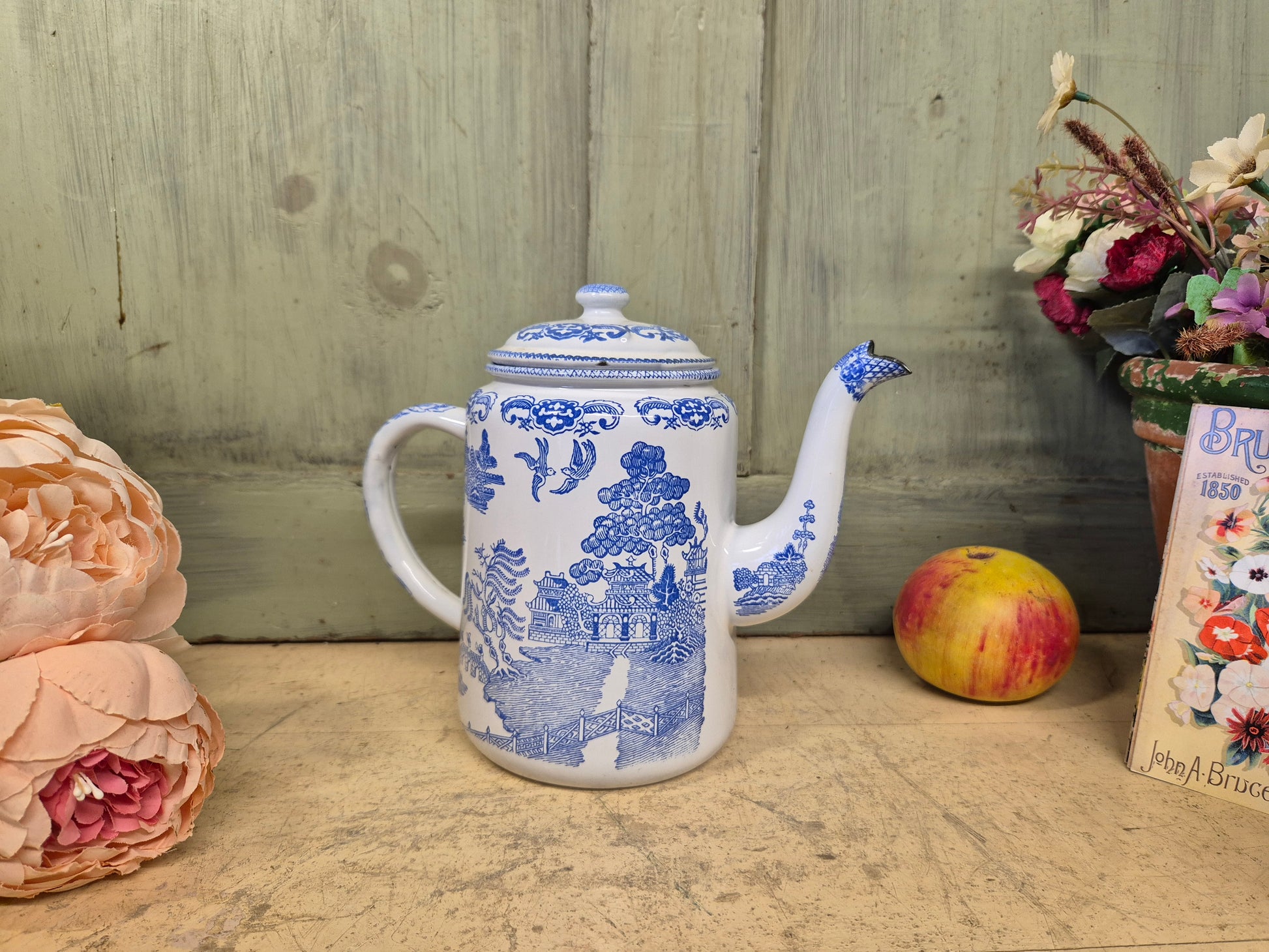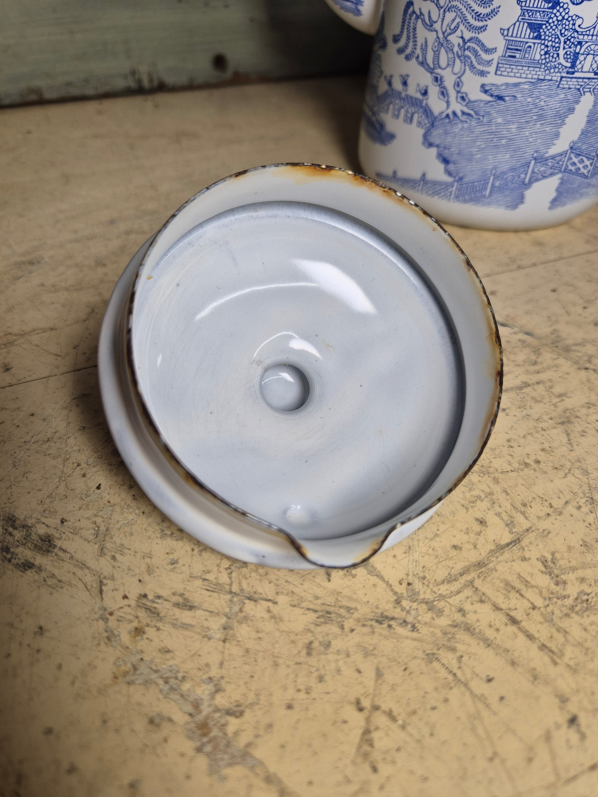 Vintage Blue Willow Enamelware Coffee Pot With Lid Enamel Ware English - Postage Included