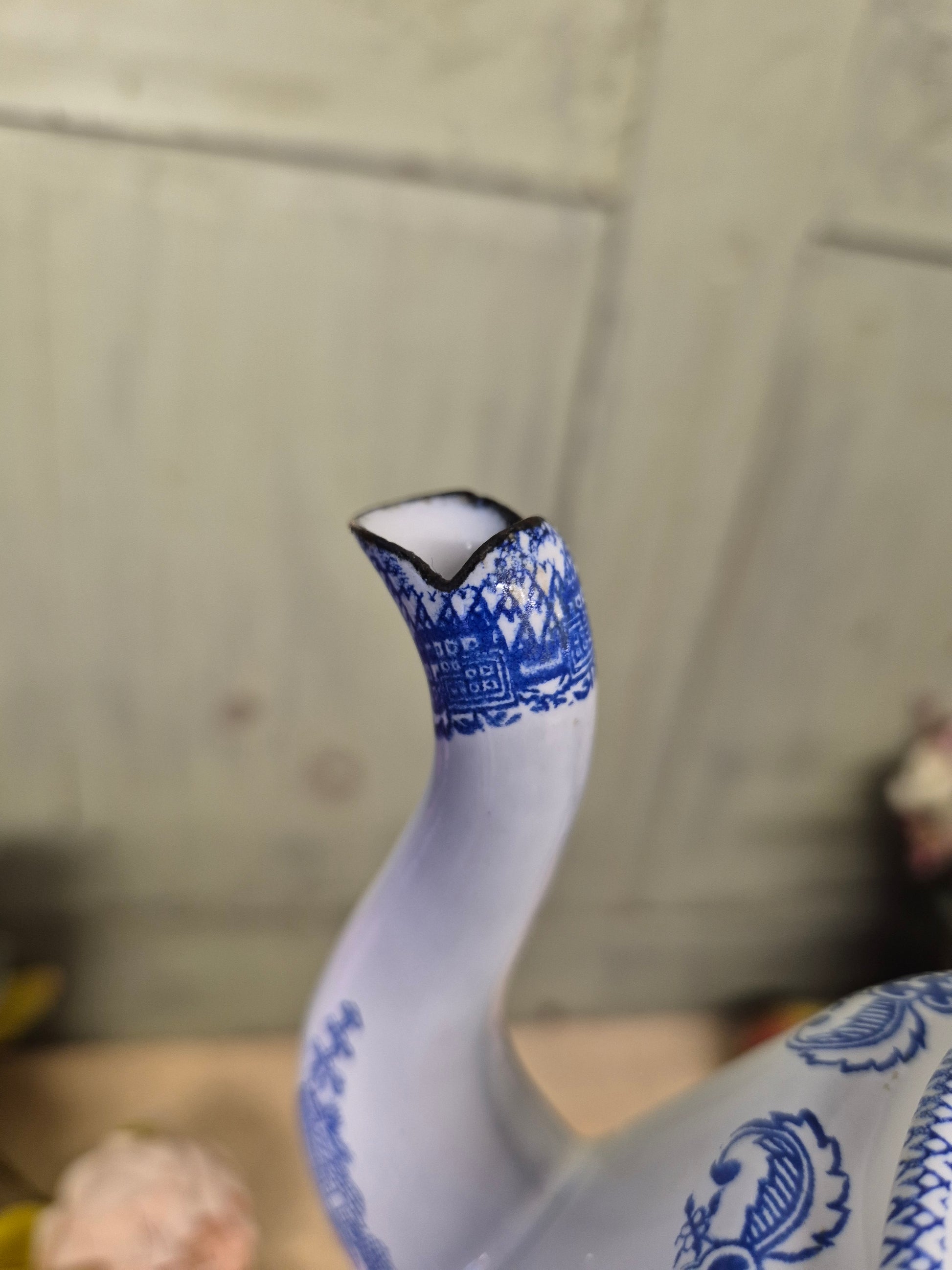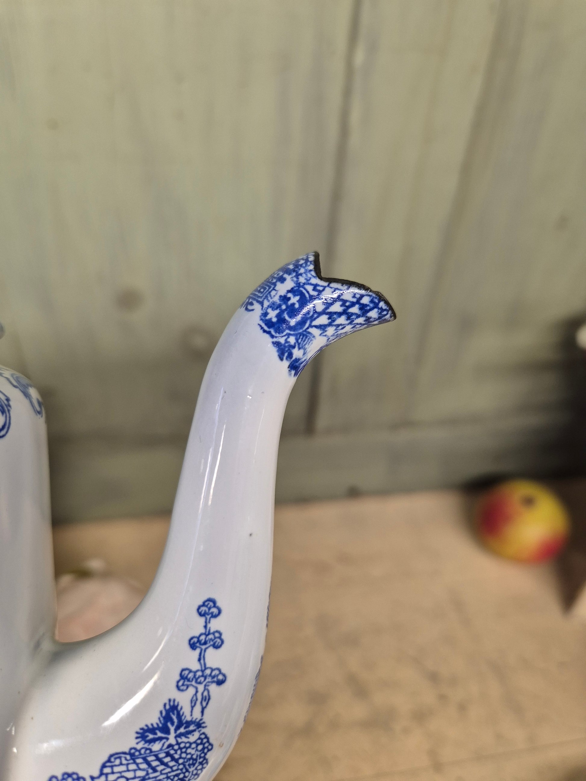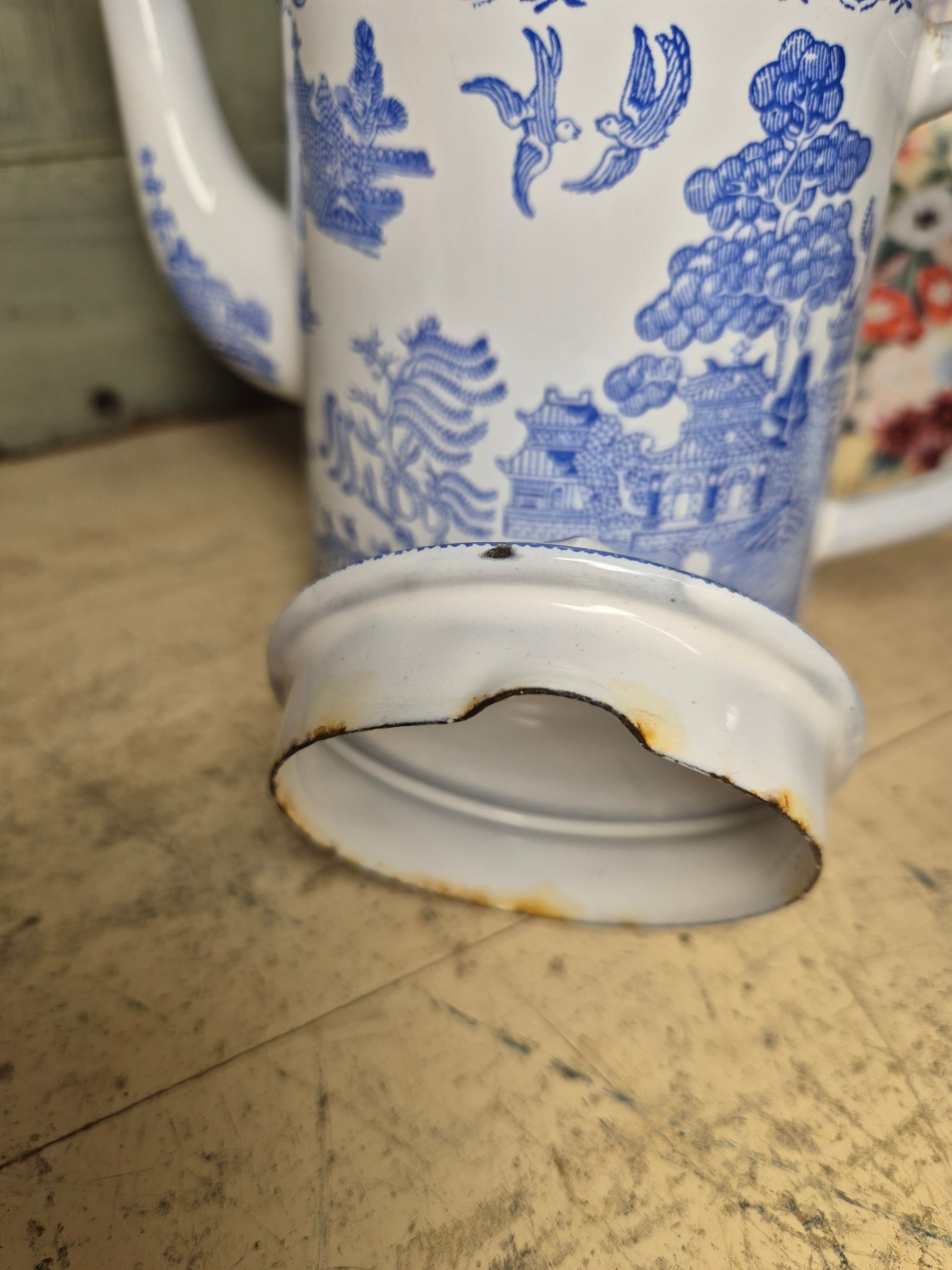 Vintage Blue Willow Enamelware Coffee Pot With Lid Enamel Ware English - Postage Included