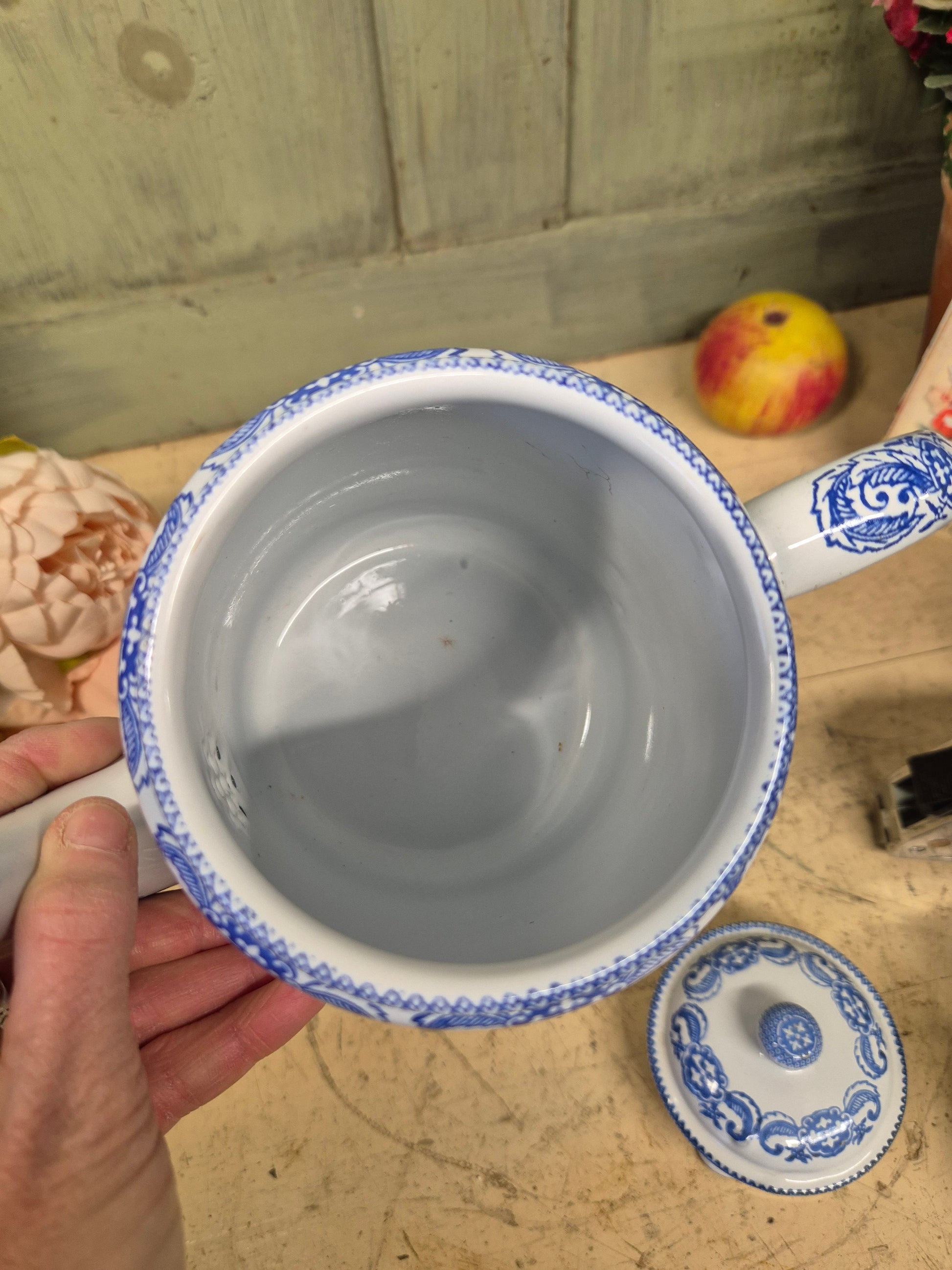 Please view all photos to show condition. It has some light marks on the indide of the lid and one small mark on the underside of the spout, ALL as shown in the photos. A lovely clean example, hard to find in this condition now.