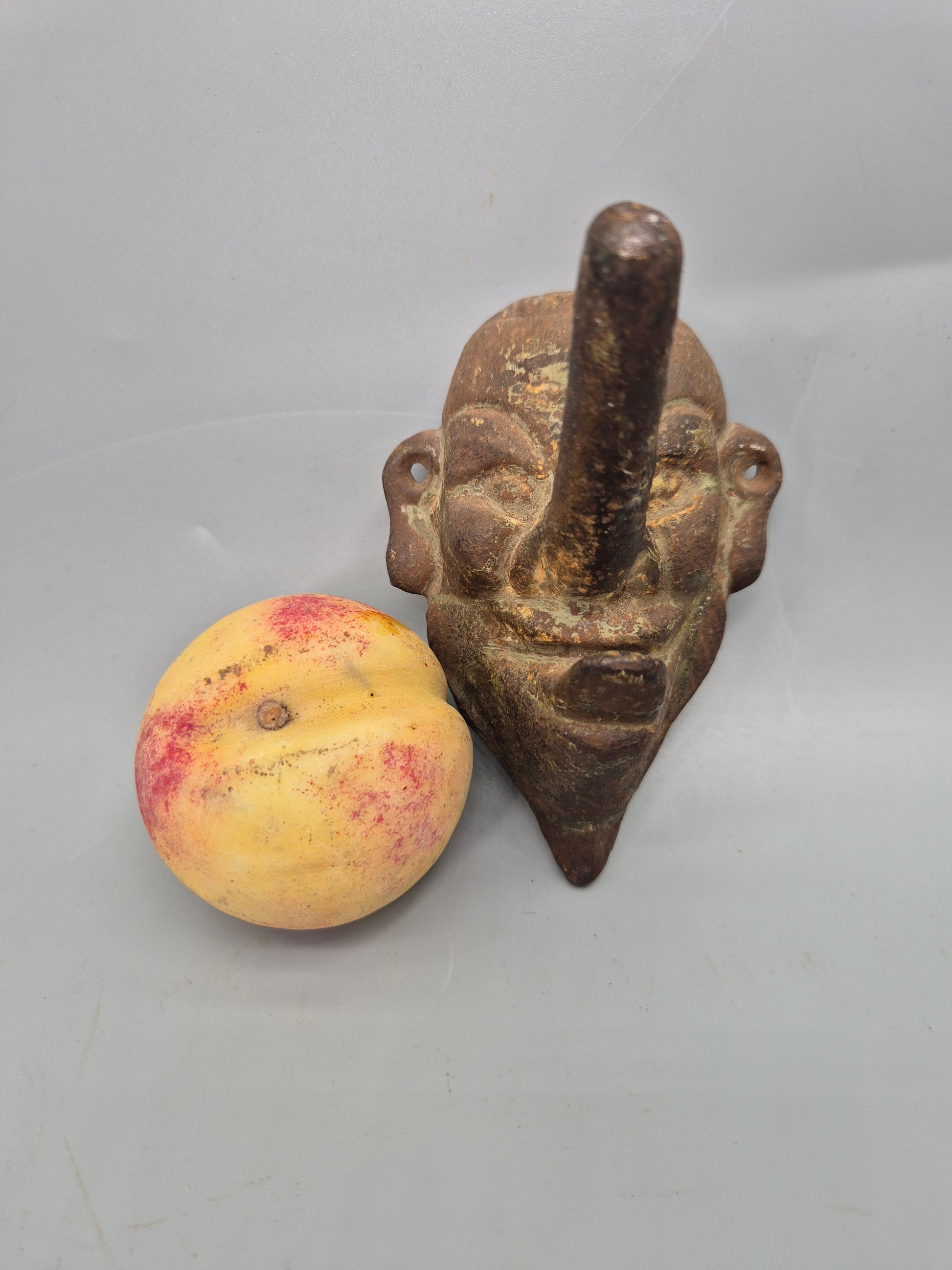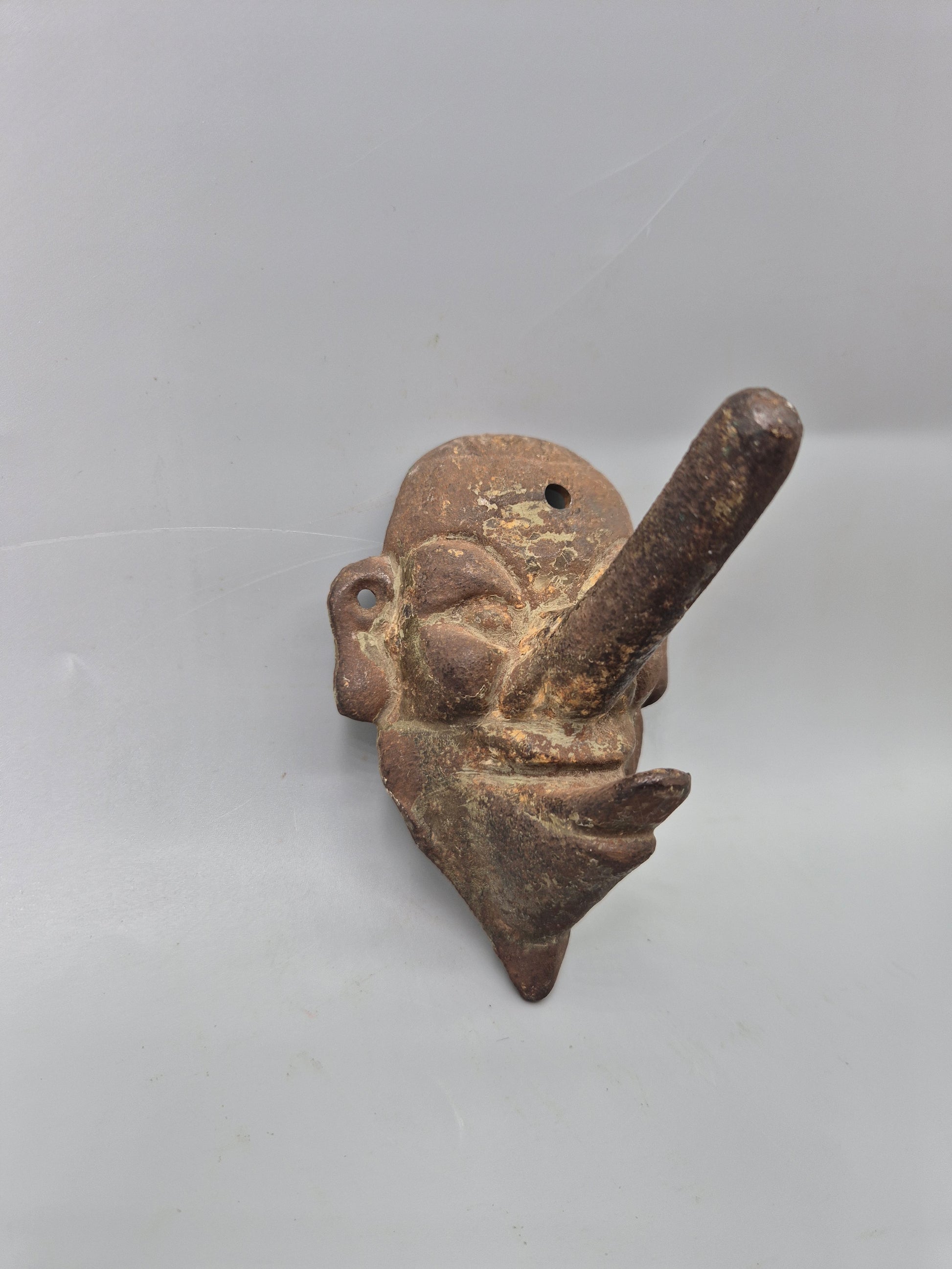 Vintage Cast Iron Wall Hook Demon Devil Gothic Long Nose Japan Wall Mask Rare